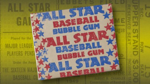 There’s a bit of a photo mystery going on with card #95 in the 1952 Topps set. Chicago White Sox pitcher Ken Holcombe is posing with his arms above his head in a stadium. What is odd about the picture is the lettering on his jersey, which seems to omit the letter “I” from Chicago.