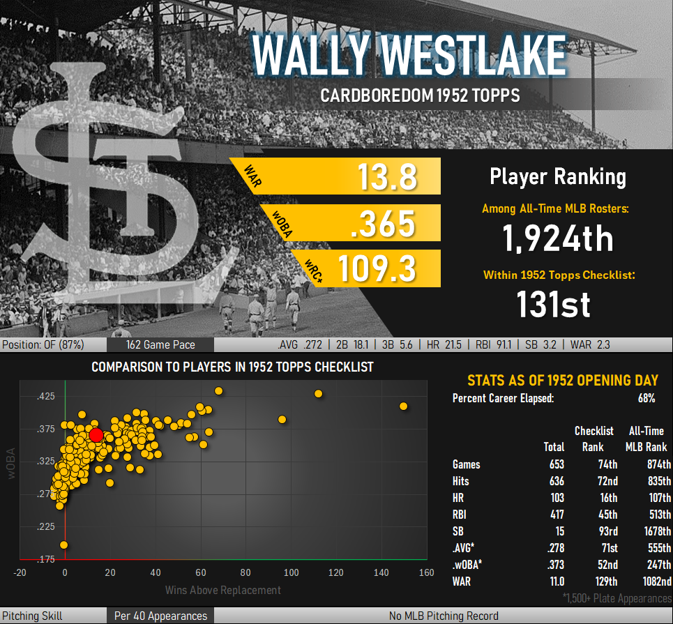 For a guy who made his debut at age 26 and struggled to get full playing time after turning 30, Wally Westlake sure has some interesting baseball cards. Card collectors and Immaculate Grid players alike should take note of this name. How many other players can claim to share their rookie card with Shoeless Joe Jackson?
